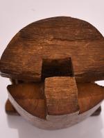 Descriere: Format din două piese realizate din lemn de paltin, formând matriţa pentru marcarea caşului. Decorul încrustat prezintă pe piesa fixă în registrul central motive vegetale de flori stilizate la baza unei frunze de ferigă, iar în partea superioară, apare o cruce flancată de steluţe; registrul este delimitat de un chenar cu motivul “dinte de lup”; în partea inferioară a piesei fixe sunt prezentate două cruci, iar la partea superioară o altă cruce. Piesa mobilă realizată sub formă de păpuşă are acelaşi decor cu motivul crucii încrustat pe capul şi picioarele acesteia; aici registrul ornamental diferă puţin de cel de pe piesa fixă, frunza de ferigă având la bază două steluţe iar crucea din partea superioară fiind mai mare. Prin îmbinarea acestor piese, se imprimau pe caş motivele de pe păpuşar, constituind marca de identificare a produselor realizate de păstor.
